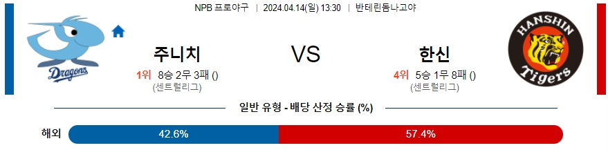 [킹콩티비] 04월 14일 주니치 vs 한신 NPB 생중계, 스포츠분석,스포츠중계