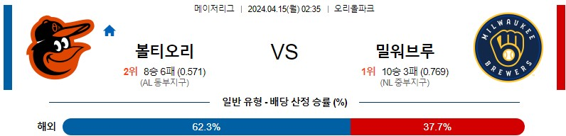 [킹콩티비] 04월 15일 볼티모어 vs 밀워키 MLB 생중계, 스포츠분석,스포츠중계