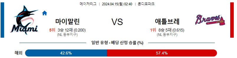 [킹콩티비] 04월 15일 마이애미 vs 애틀랜타 MLB 생중계, 스포츠분석,스포츠중계
