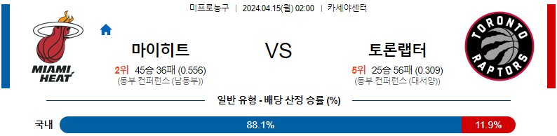 [킹콩티비] 04월 15일 마이애미 vs 토론토 NBA 생중계, 스포츠분석,스포츠중계