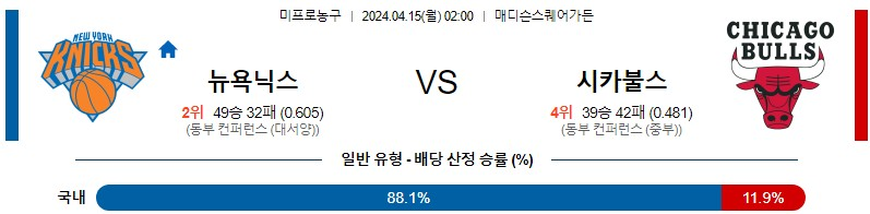 [킹콩티비] 04월 15일 뉴욕 vs 시카고 NBA 생중계, 스포츠분석,스포츠중계