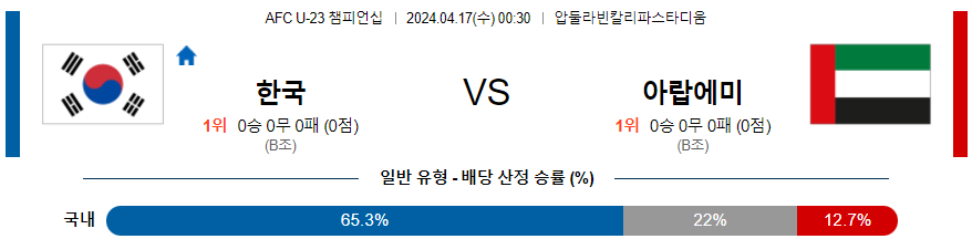 한국이 외신에서는 유력한 진출 후보로 꼽히고 있기는 하다. 다만 엔트리가 100%라고 하기는 어려운 상황이고, UAE도 감독이 이미 아시아 팀과 붙은 상황에서 좋은 결과를 냈다는 점은 무시하기 어려운 것이 사실. 언더(2.5)를 1순위로 생각하는 것도 방법이 될 수 있을 것으로 본다.