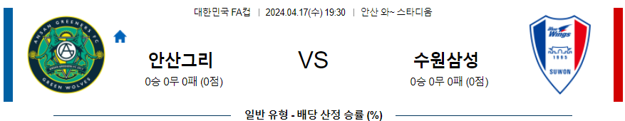 [킹콩티비] 04월 17일 안산 vs 수원삼성 대한민국FA컵 생중계, 스포츠분석,스포츠중계