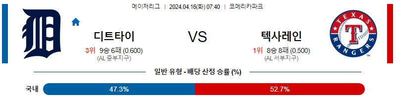 디트로이트 텍사스 야구분석