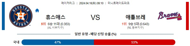 [킹콩티비] 04월 16일 휴스턴 vs 애틀란타 MLB 생중계, 스포츠분석,스포츠중계