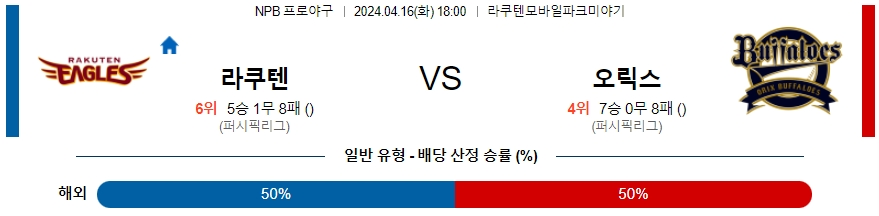 [킹콩티비] 04월 16일 라쿠텐 vs 오릭스 NPB 생중계, 스포츠분석,스포츠중계