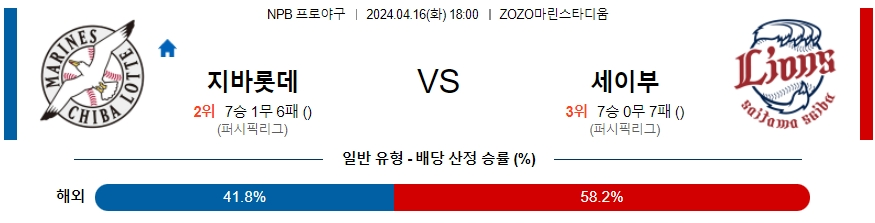 [킹콩티비] 04월 16일 치바롯데 vs 세이부 NPB 생중계, 스포츠분석,스포츠중계