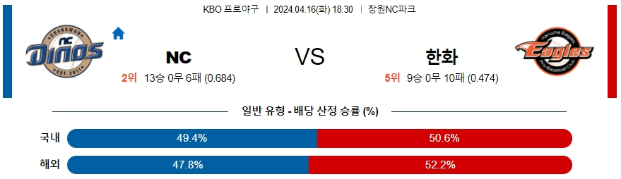 [킹콩티비] 04월 16일 엔씨 vs 한화 KBO 생중계, 스포츠분석,스포츠중계