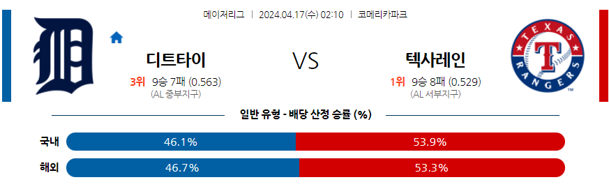 [킹콩티비] 04월 17일 디트로이트 vs 텍사스 MLB 생중계, 스포츠분석,스포츠중계