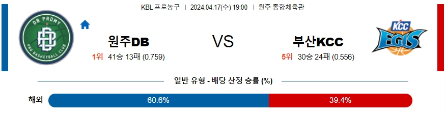 [킹콩티비] 04월 17일 원주DB vs 부산KCC KBL 생중계, 스포츠분석,스포츠중계