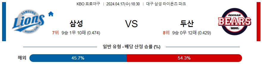 [킹콩티비] 04월 17일 삼성 vs 두산 KBO 생중계, 스포츠분석,스포츠중계