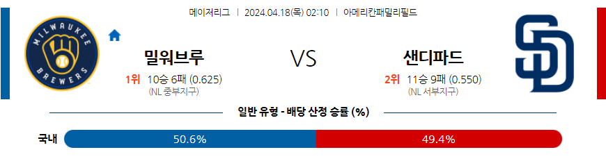 [킹콩티비] 04월 18일 밀워키 vs 샌디에이고 MLB 생중계, 스포츠분석,스포츠중계
