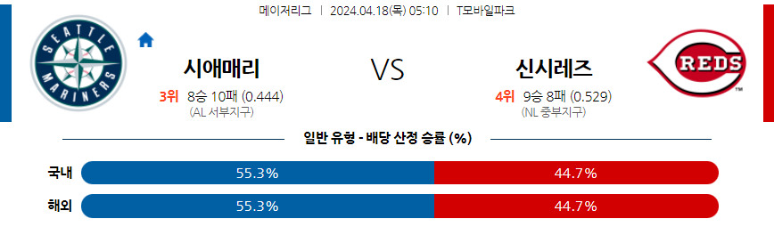 [킹콩티비] 04월 18일 시애틀 vs 신시내티 MLB 생중계, 스포츠분석,스포츠중계