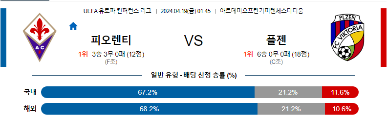 [킹콩티비] 04월 19일 피오렌티나 vs 플젠 유로파컨퍼런스 생중계, 스포츠분석,스포츠중계