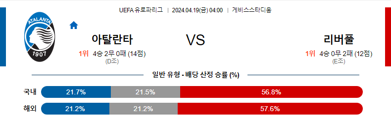 [킹콩티비] 04월 19일 아탈란타 vs 리버풀 유로파 생중계, 스포츠분석,스포츠중계