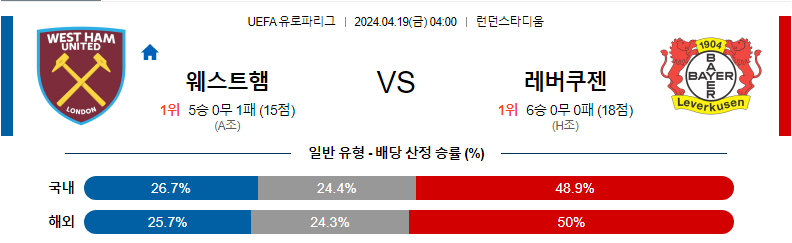 [킹콩티비] 04월 19일 웨스트햄 vs 레버쿠젠 유로파 생중계, 스포츠분석,스포츠중계