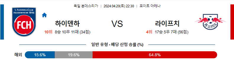 [킹콩티비] 04월 20일 하이덴하임 vs 라이프치히 분데스리가 생중계, 스포츠분석,스포츠중계