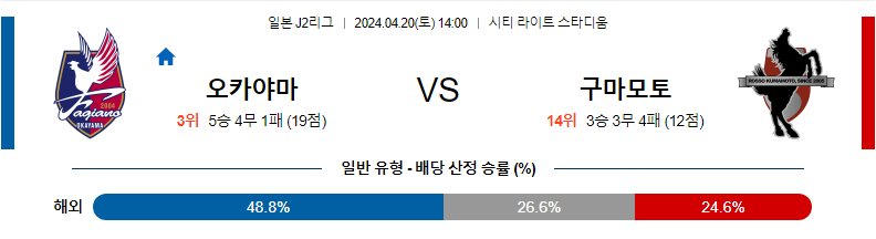 오카야마 구마모토 축구분석