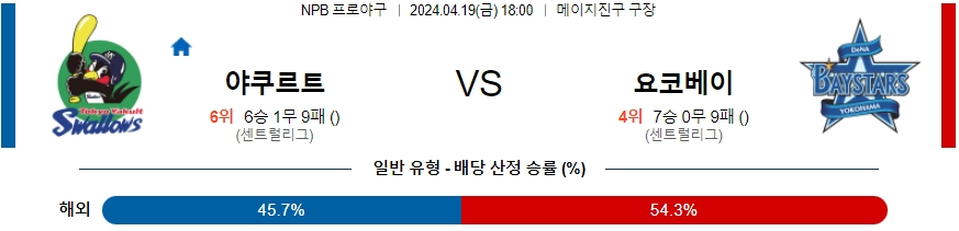 [킹콩티비] 04월 19일 야쿠르트 vs 요코하마 NPB 생중계, 스포츠분석,스포츠중계