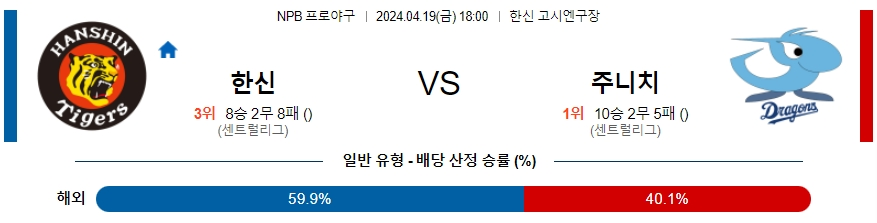 [킹콩티비] 04월 19일 한신 vs 주니치 NPB 생중계, 스포츠분석,스포츠중계