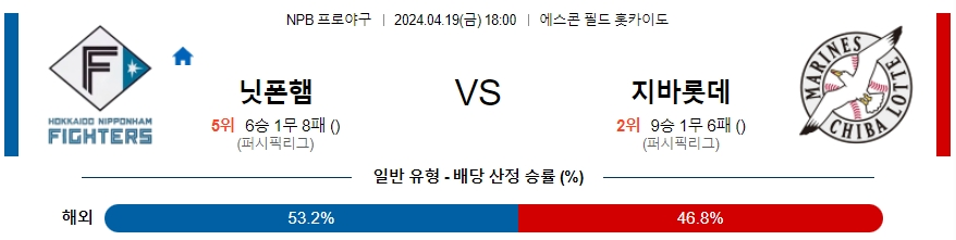 [킹콩티비] 04월 19일 니혼햄 vs 치바롯데 NPB 생중계, 스포츠분석,스포츠중계