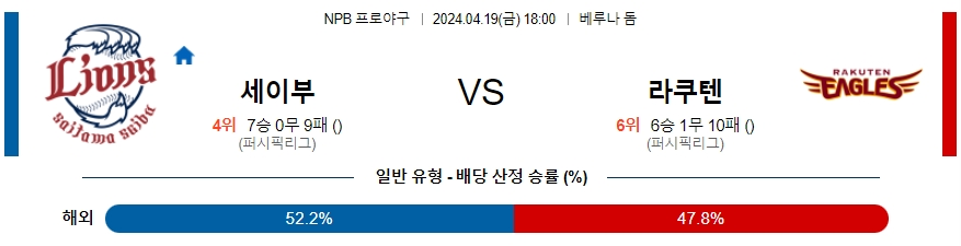 [킹콩티비] 04월 19일 세이부 vs 라쿠텐 NPB 생중계, 스포츠분석,스포츠중계