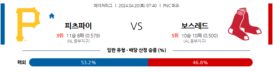 [킹콩티비] 04월 20일 피츠버그 vs 보스턴 MLB 생중계, 스포츠분석,스포츠중계