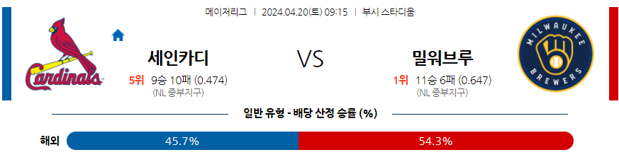 St.루이스 밀워키 04월20일