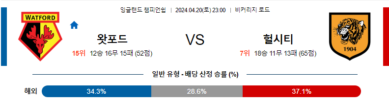 [킹콩티비] 04월 20일 왓포드 vs 헐시티 챔피언쉽 생중계, 스포츠분석,스포츠중계