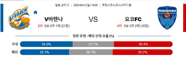[킹콩티비] 04월 21일 나가사키 vs 요코하마FC J2리그 생중계, 스포츠분석,스포츠중계