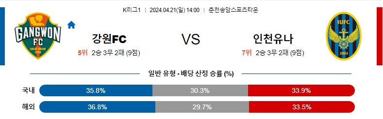 [킹콩티비] 04월 21일 강원 vs 인천 K리그 생중계, 스포츠분석,스포츠중계
