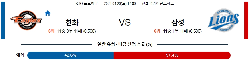 [킹콩티비] 04월 20일 한화 vs 삼성 KBO 생중계, 스포츠분석,스포츠중계