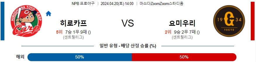 [킹콩티비] 04월 20일 히로시마 vs 요미우리 NPB 생중계, 스포츠분석,스포츠중계