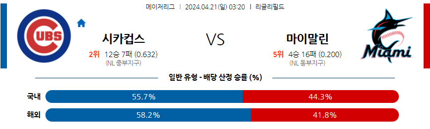 [킹콩티비] 04월 21일 시카고C vs 마이애미 MLB 생중계, 스포츠분석,스포츠중계