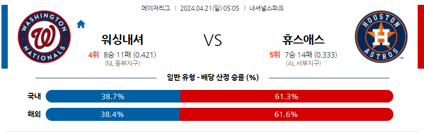 [킹콩티비] 04월 21일 워싱턴 vs 휴스턴 MLB 생중계, 스포츠분석,스포츠중계