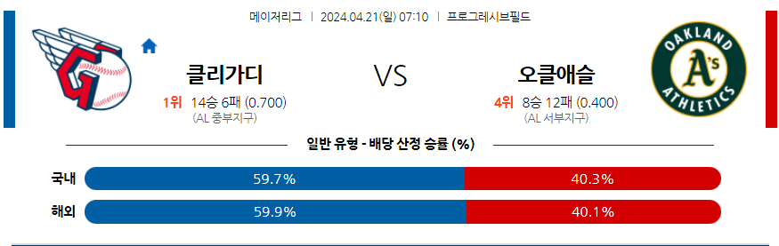 [킹콩티비] 04월 21일 클리블랜드 vs 오클랜드 MLB 생중계, 스포츠분석,스포츠중계