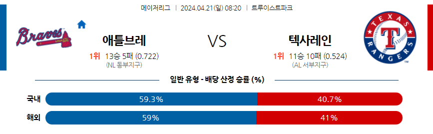 [킹콩티비] 04월 21일 애틀랜타 vs 텍사스 MLB 생중계, 스포츠분석,스포츠중계