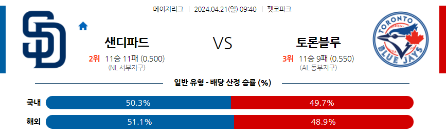 [킹콩티비] 04월 21일 샌디에이고 vs 토론토 MLB 생중계, 스포츠분석,스포츠중계