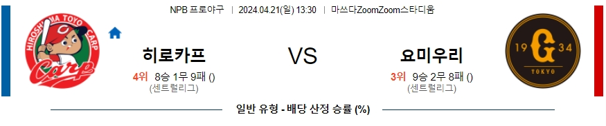 [킹콩티비] 04월 21일 히로시마 vs 요미우리 NPB 생중계, 스포츠분석,스포츠중계