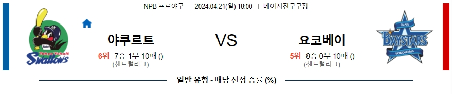 [킹콩티비] 04월 21일 야쿠르트 vs 요코하마 NPB 생중계, 스포츠분석,스포츠중계