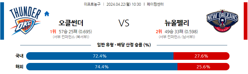 [킹콩티비] 04월 22일 오클라호마시티 vs 뉴올리언스 NBA 생중계, 스포츠분석,스포츠중계