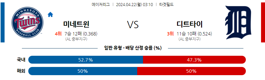 [킹콩티비] 04월 22일 미네소타 vs 디트로이트 MLB 생중계, 스포츠분석,스포츠중계
