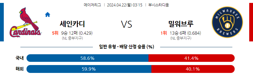 [킹콩티비] 04월 22일 St.루이스 vs 밀워키 MLB 생중계, 스포츠분석,스포츠중계