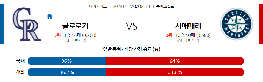 [킹콩티비] 04월 22일 콜로라도 vs 시애틀 MLB 생중계, 스포츠분석,스포츠중계