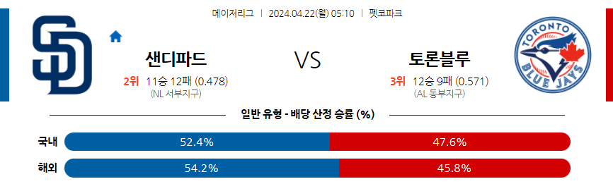 [킹콩티비] 04월 22일 샌디에이고 vs 토론토 MLB 생중계, 스포츠분석,스포츠중계