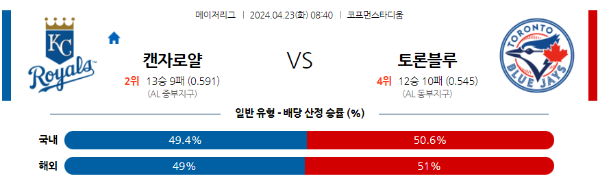 [킹콩티비] 04월 23일 캔자스시티 vs 토론토 MLB 생중계, 스포츠분석,스포츠중계