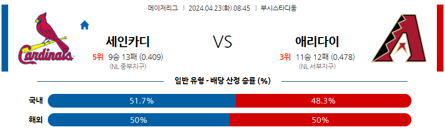 [킹콩티비] 04월 23일 St.루이스 vs 애리조나 MLB 생중계, 스포츠분석,스포츠중계