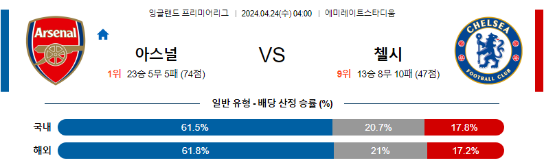 [킹콩티비] 04월 24일 아스날 vs 첼시 EPL 생중계, 스포츠분석,스포츠중계