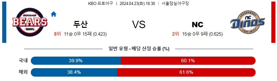 두산 NC 04월23일