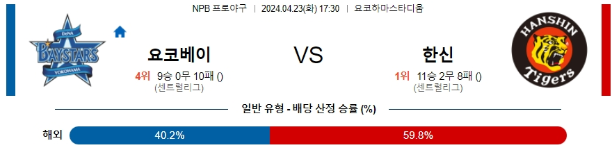 이번 경기는 최근 5연승을 달리고 있는 한신과 2연승 중인 요코하마의 맞대결로, 양 팀 모두 연승 행진을 이어갈 가능성이 큰 중요한 경기이다.